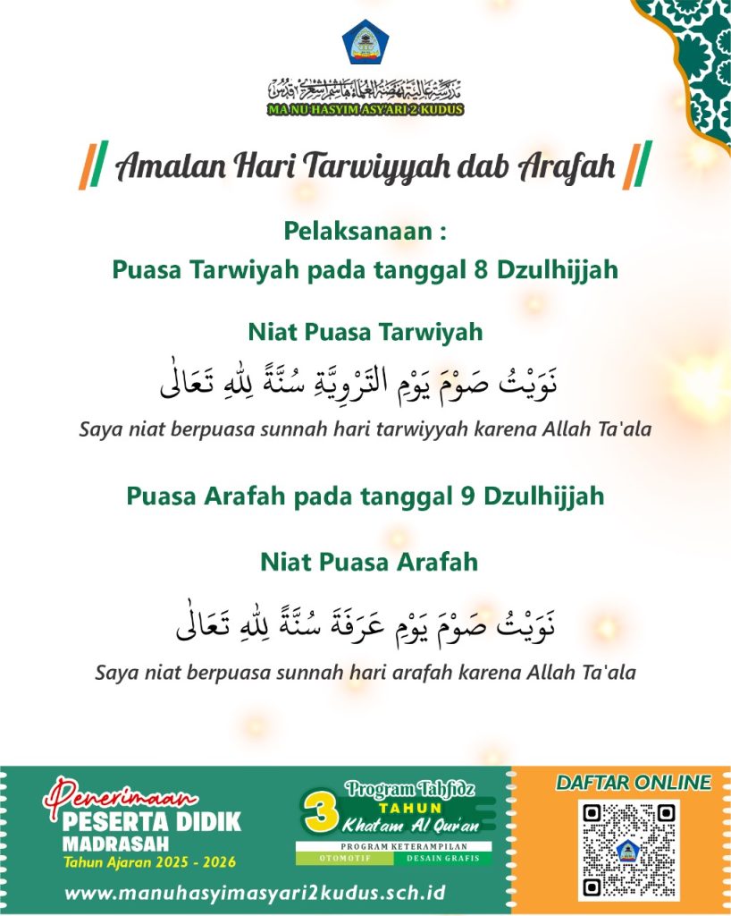 Puasa Tarwiyah dan Puasa Arafah adalah dua ibadah sunnah yang sangat dianjurkan bagi umat Islam, terutama yang tidak sedang menunaikan ibadah haji. Keduanya dilaksanakan pada tanggal 8 dan 9 Dzulhijjah, dua hari penting dalam rangkaian bulan haji. Asal Mula Penamaan Keutamaan Niat Puasa Tarwiyah dan Arafah Niat puasa dapat dilafalkan di malam hari atau sebelum […]
